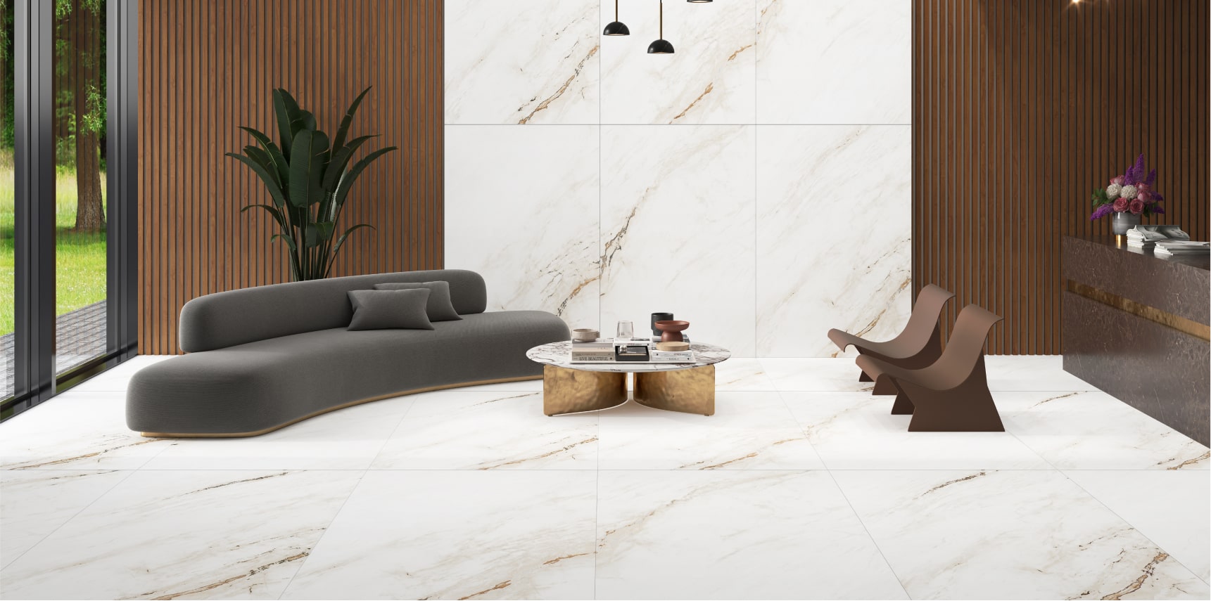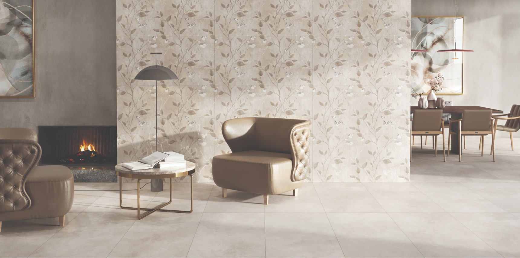 Make a statement with luxurious living room tiles only at Porcious - a renowned tile company in India.