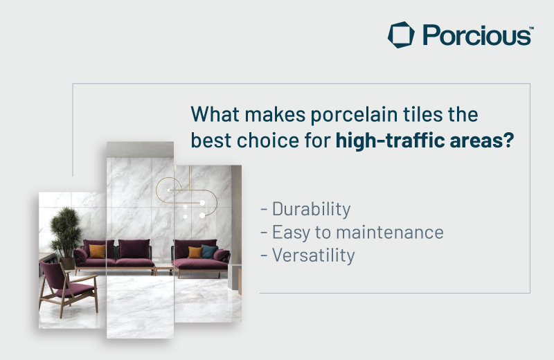 Yet again, let’s discuss the durability of porcelain tiles before proceeding. You know their composition gives them the strength to endure heavy traffic. Besides that, they are also scratch-resistant. Porcelain tiles will not show signs of early degradation in areas exposed to foot traffic, heat, moisture, and rough usage.